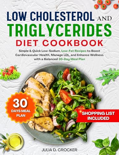 Low Cholesterol and Triglycerides Diet Cookbook by Julia D. Crocker: This cookbook is packed with simple, quick, and heart-healthy recipes designed to lower cholesterol and triglycerides while keeping meals flavorful and satisfying. With a balanced 30-day meal plan, low-sodium, and low-fat options, this book makes it easy to improve cardiovascular health without feeling restricted.