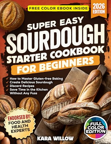 Super Easy Sourdough Starter Cookbook for Beginners by Kara Willow: Discover the joy of homemade sourdough—without the stress. This beginner-friendly guide makes baking simple with step-by-step instructions, gluten-free options, and clever discard recipes that save time, reduce waste, and deliver delicious results every time.