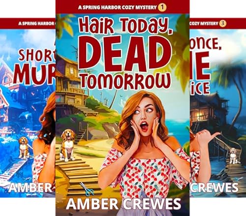 Hair Today, Dead Tomorrow (Spring Harbor Cozy Mystery Book 1) by Amber Crewes: After a scandalous incident shakes the quiet streets of her small Georgia town, hairstylist Summer Snow packs up her shears and dreams, and heads for the sun-kissed shores of the West Coast for a break she hopes will last long enough for things to quiet down back home. In a town of curls and secrets, one snip too many leads to deadly drama.